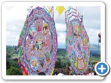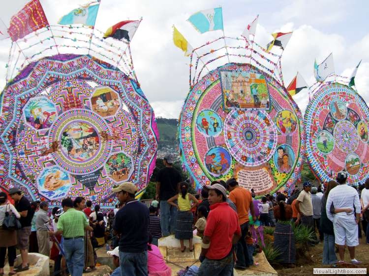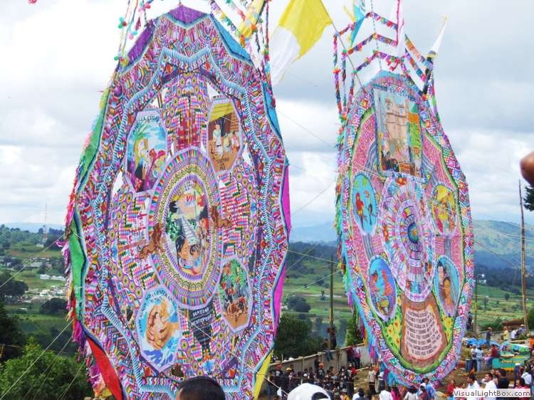 | GIANT KITES TOUR. NOVEMBER 1ST DAY OF THE DEAD, SOUL'S DAY. SANTIAGO SACATEPEQUEZ. On November 1 and 2, the markets of Guatemala is full of marigolds, chrysanthemums and copal, an incense made of resin Columbian pine. People clean family graves and decorate them with tissue paper cutouts called papel picado, flowers and candles. We also honor the dead with festive foods such as candied fruits, tamales and cold cuts (a dish of sausages and vegetables prepared only at this time of year.) These dates mark the celebration of All Souls Day or Day of the Dead ", a very important festival throughout Guatemala, especially in the city of Santiago predominantly Kakchiquel Sacatepéquez, where a colorful kite ritual takes place. Preparations for the Day of the Dead begins 40 days before November 1, when young people begin the construction of kites, a tradition that goes back at least 110 years. Usually, men did most of the work, but women today to join in the creation of intricately designed kites, there may be political, religious or cultural. At present there is a contingency women committed Sacatepéquez decision to compete in annual competitions and kite making. On November 1, the inhabitants of Santiago begins to fill the cemetery at 4:00 am During the cleaning, painting and decorating family graves, neighbors fondly remember the deceased, and catch up on the latest news . Community bonds renewed and strengthened as people work closely together, sharing paint, tools and brushes for the renovation of the graves, while the flowers of water, pray, and picnic together. It is a good time. Young people expect a strong wind to raise their giant kites to the skies, the spirits beckoning travelers to 4:00 pm, when comets are reduced and people back home village to await the arrival of the soul. People can create home altars in honor of deceased family members and relatives and neighbors visit each other to pay their respects. Visitors are offered chayotes cooked (a green vegetable), sweet corn, chilacayote and pumpkin (sweet), along with chicha, a fermented corn drink hot. Departure from Guatemala City. 6:30 am. Return 3:00 p.m. From Antigua. 8:30 am. Return 3:00 pm From Panajachel. 6:00 am. Return 3:00 pm Tour includes: Transportation by mini bus, bilingual guide and snack. |